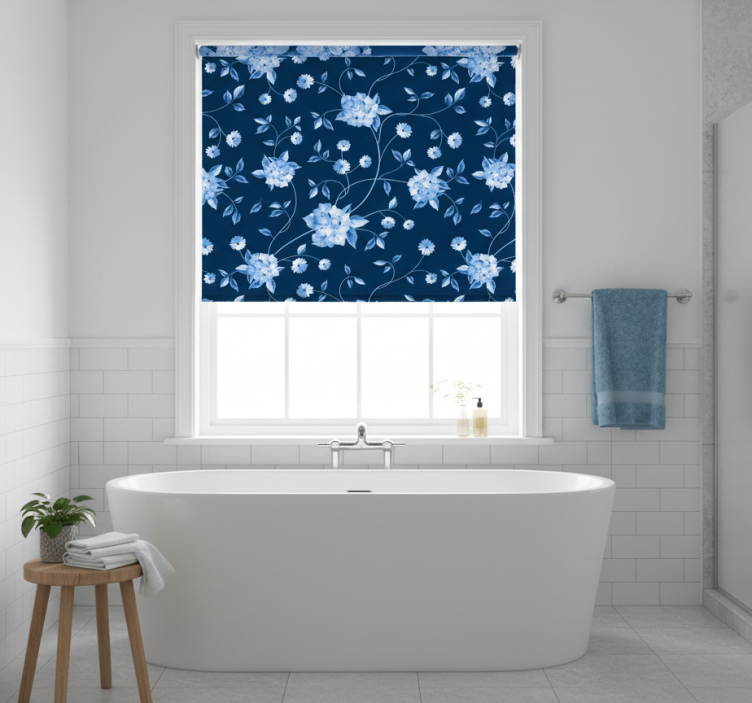 设计以深海军蓝背景为衬,展现出精致的蓝色花朵和细腻的叶子。各种花卉,包括雏菊,优雅地交织在一起,增添了一丝优雅的气息。茎的流畅曲线增强了和谐感,营造出宁静而迷人的美感,使任何空间都焕然一新。