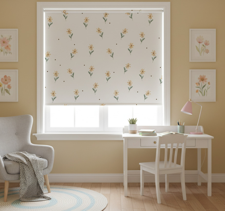 这个设计以精致的细长绿叶和迷人的黄色花朵为特色,散布的黑点增添了层次感。这种细腻的构图将宁静与自然带入室内,成为那些寻求柔和花卉装饰的理想选择。