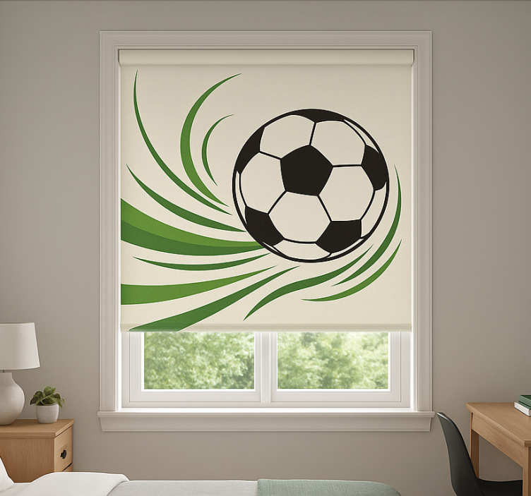 一个充满活力的设计,展示了经典的黑白足球,周围环绕着流动的绿色线条,传达出运动和活力的感觉。节奏感十足的图案捕捉了运动和兴奋的本质,非常适合希望为空间增添生气勃勃气息的足球爱好者。