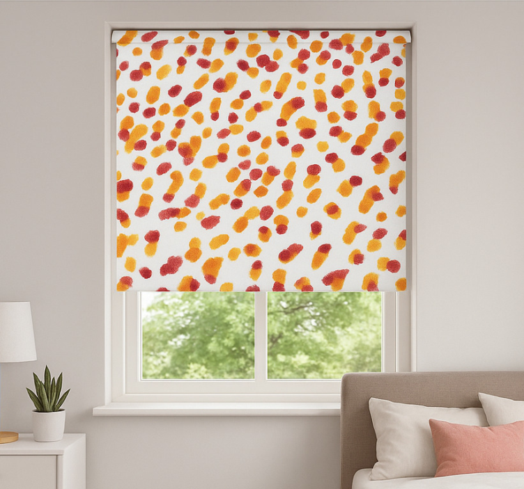 盲人青少年橙色和红色的圆点卷帘非常适合用于卧室、书房或儿童房。您只需根据窗户的尺寸进行简单的安装,就能享受它带来的美感和便捷。无论是提升隐私性还是调节光线,都能完美满足您的需求。