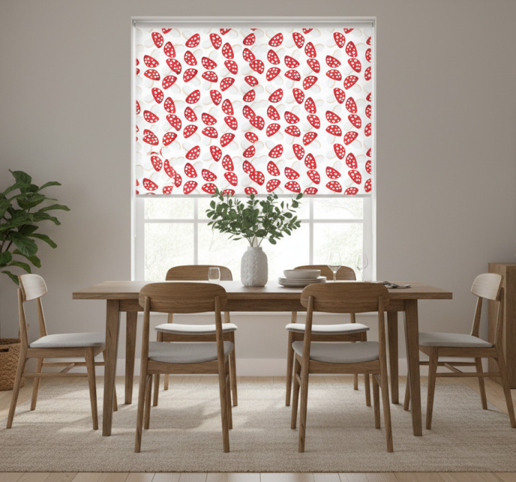 在居家环境中,您可以轻松将dining room roller blind,即盲人餐厅经典蘑菇白色背景,应用于任何房间。它能够调节室温,提升居住舒适度,同时为您的家居增添一份艺术气息。