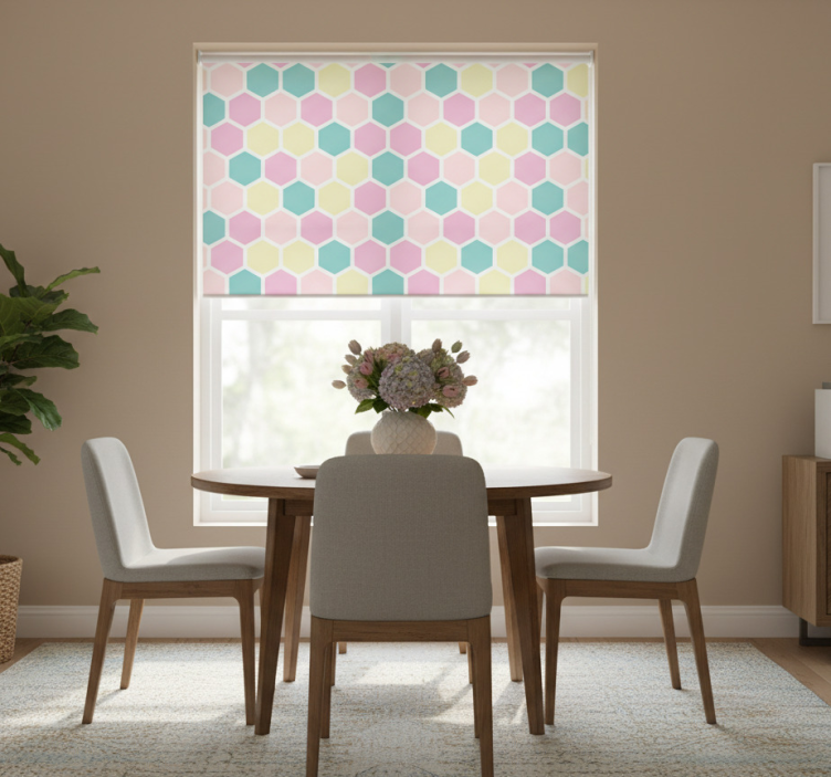 选择在我们的在线商店购买这款dining room roller blind,您将享受到极具性价比的优质产品。我们的盲人餐厅展现几何图案与柔和色彩的卷帘,不仅设计独特,功能多样,还提供100%可定制的测量服务,确保完美符合您的窗户需求。我们致力于为客户提供卓越的购物体验,让您轻松找到理想的家居装饰。