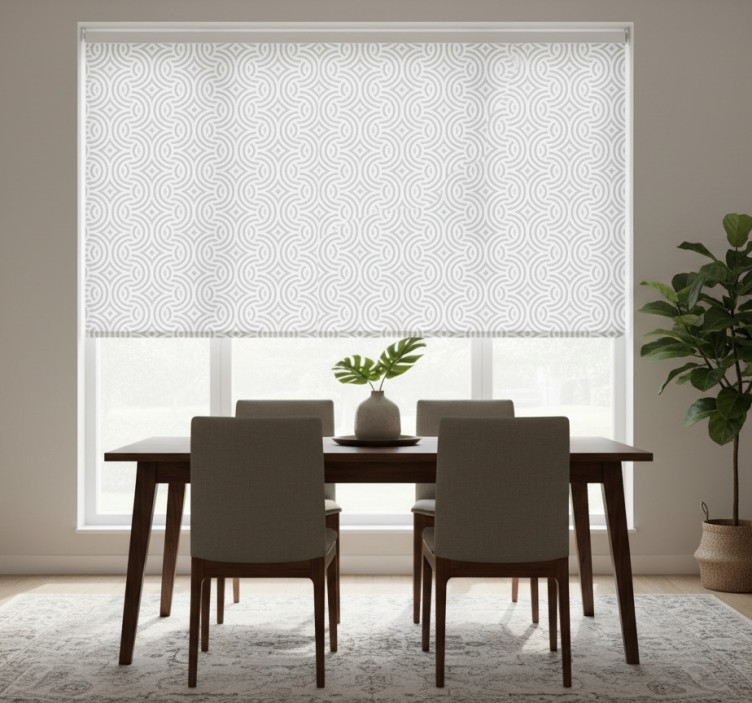 这款中餐厅的几何螺旋图案设计的卷帘特别适合在用餐区使用。它不仅提供了理想的隐私保护,还能调节室内温度,营造出舒适的就餐环境。无论是在家庭聚会还是正式宴会中,这款卷帘都能为您的用餐体验增添一份精致。