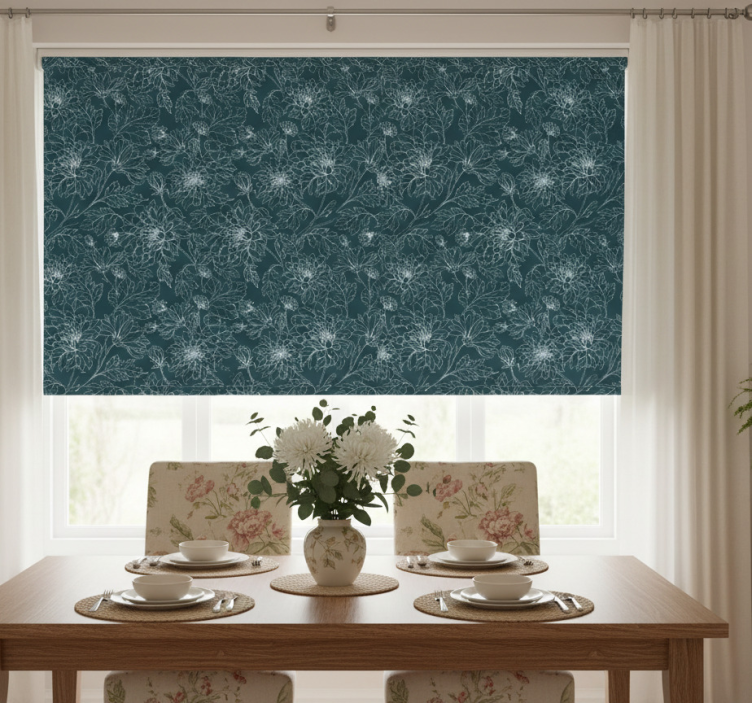 使用这款 dining room roller blind 盲人餐厅呈现经典的白色花卉设计,可以轻松调节光线和隐私。只需简单的操作,即可根据需要升高或降低卷帘,让用餐环境更加宜人。