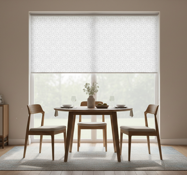 选择在我们的在线商店购买dining room roller blind 盲人餐厅采用灰白现代图案设计,您将享受到无与伦比的购物体验。我们提供100%可定制测量的服务,确保每一位客户都能找到最适合自己窗户的卷帘。并且,我们的产品质量优越,易于清洁,能够为您的生活带来极大的便利!