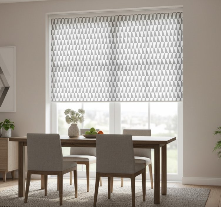 选择在我们在线商店购买这款dining room roller blind,您将享受到高品质的产品与优质的服务。我们的盲人餐厅灰色三角形采用100%可定制测量,确保完美贴合您的窗户,并提供多种纹理选择以满足不同的光线和隐私需求!
