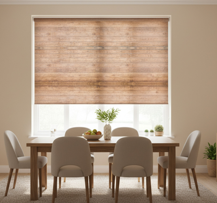 将dining room roller blind盲人餐厅采用横向乡村风格木材的卷帘安装在窗户上,可以有效调节光线和隐私。只需简单的两次点击,您就可以轻松组装和拆卸,方便您在清洁时使用。这样您可以随时享受清新明亮的居家环境!