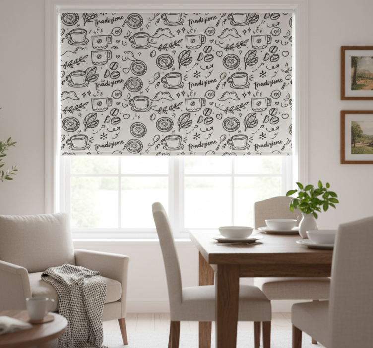 一个迷人的设计,展示了咖啡杯、糕点和咖啡豆的精致插图。奇幻的元素如叶子和心形增添了魅力,营造出愉悦的氛围。重复的元素形成了一个统一的图案,庆祝咖啡享受的乐趣和传统。