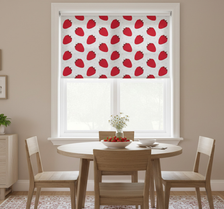 将盲人餐厅红色草莓图案在白色背景上应用于您的用餐空间,轻松为房间增添亮点。只需简单的安装步骤,您就能享受到这款卷帘带来的新鲜感和活力,为家居装饰增添独特的个性。
