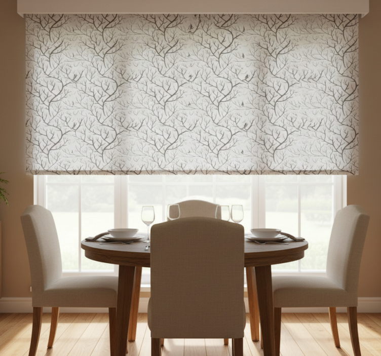 盲人餐厅薄灰色树枝与鸟儿不仅是一款窗帘,更是一件艺术品。它将自然元素与现代设计结合,能有效提升餐厅的装饰效果。无论是家庭聚餐还是朋友聚会,这款卷帘都能为您的用餐环境增添一份优雅与舒适,让每一位来宾都感受到温馨的氛围!