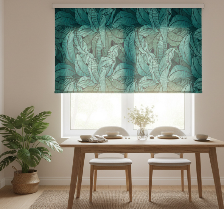 在盲人餐厅,盲人餐厅自然中的野生深绿色叶子可以轻松应用于任何窗户。无论是厨房、客厅还是餐厅,这款卷帘都能为您的空间带来独特的装饰效果。只需将其固定在窗框上,便可享受其带来的自然光线和隐私保护。