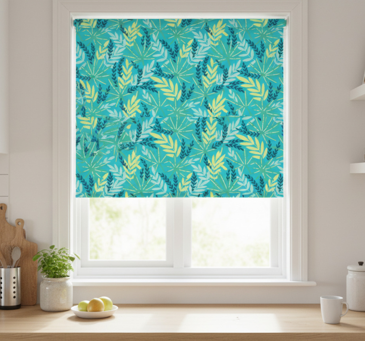 盲人厨房蓝色热带图案产品非常适合在厨房、餐厅及其他休闲空间使用。无论是家庭聚会还是日常使用,它都能轻松融入,为您的空间增添一份艺术感。您只需简单地安装在窗户上,便可享受它带来的舒适与美观。