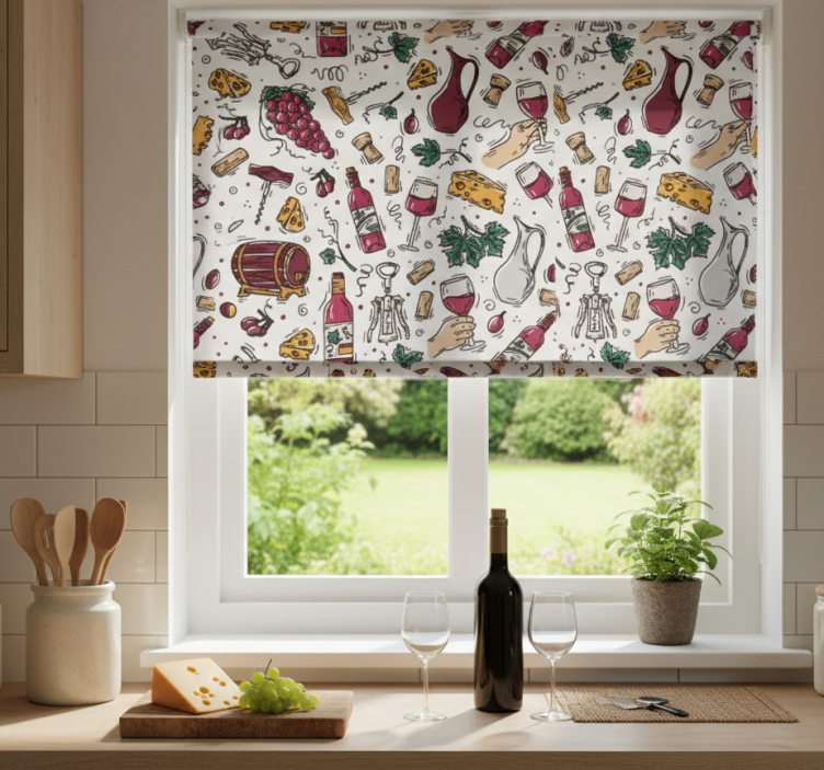 选择在我们的在线商店购买盲人厨房葡萄、葡萄酒与奶酪复古图案,您将享受到优质的客户服务和便捷的购物体验。我们承诺提供100%可定制测量,确保产品完美贴合您的厨房空间。