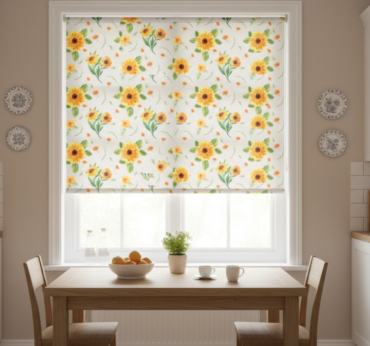 选择在我们的在线商店购买kitchen roller blind 盲人厨房向日葵水彩花卉图案,您将获得优质的服务和100%可定制的测量选项。我们提供多种纹理选择,您可以根据自己的需求选择适合的光量和隐私保护。让您的厨房不仅实用,更加美观,尽在一窗之间!