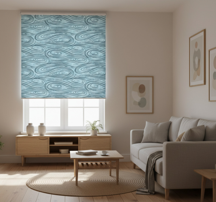 一个迷人的设计,展现出旋转的图案,色调为宁静的蓝色。复杂的线条和曲线营造出一种运动感,仿佛水流轻柔。这种视觉效果唤起了一种宁静的氛围,吸引眼球,带来平和与安宁的感觉。