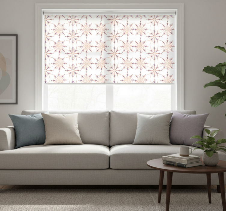 精致的星爆图案与优雅的形状交织在一起,形成迷人的视觉节奏。设计采用柔和的紫色和桃色调,增强了其吸引力。几何排列引人注目,而精致的线条则增添了深度,使其成为任何装饰的独特补充。