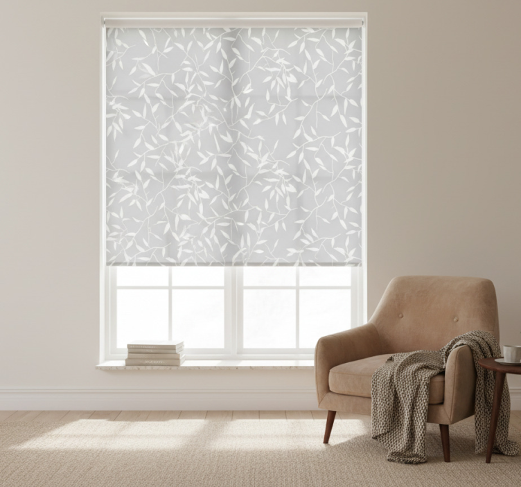 一个精致的设计,展现出交错的树枝,装饰着细长的叶子。柔和的灰色背景增强了图案的细腻优雅,唤起一种宁静与自然的联系。这一复杂的图案激发出宁静的感觉,营造出一种宁静的氛围,非常适合各种装饰风格。