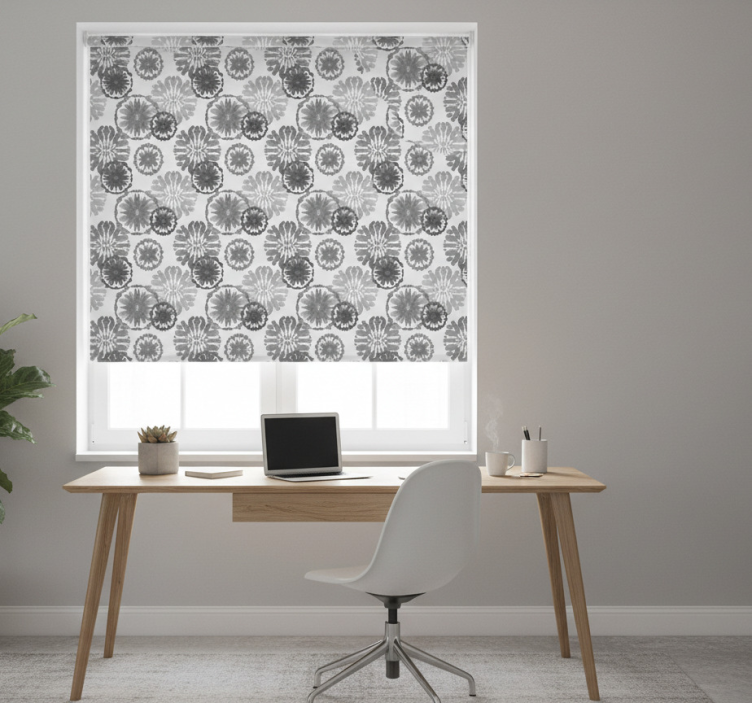 复杂的花卉图案交织在灰色的阴影中,形成了一幅精致的形状与线条的挂毯。各种大小的花卉设计无缝融合,提供了深度,同时保持了平衡的美感。明暗色调的交错唤起了一种优雅感,提升了任何装饰的空间。