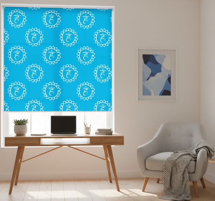 一幅生动的蓝色背景上有着复杂的太阳图案重复排列,每个图案都环绕着一个象征性的设计。这些艺术元素唤起了一种平衡与和谐的感觉,使其成为追求视觉吸引力和宁静美感的理想选择。