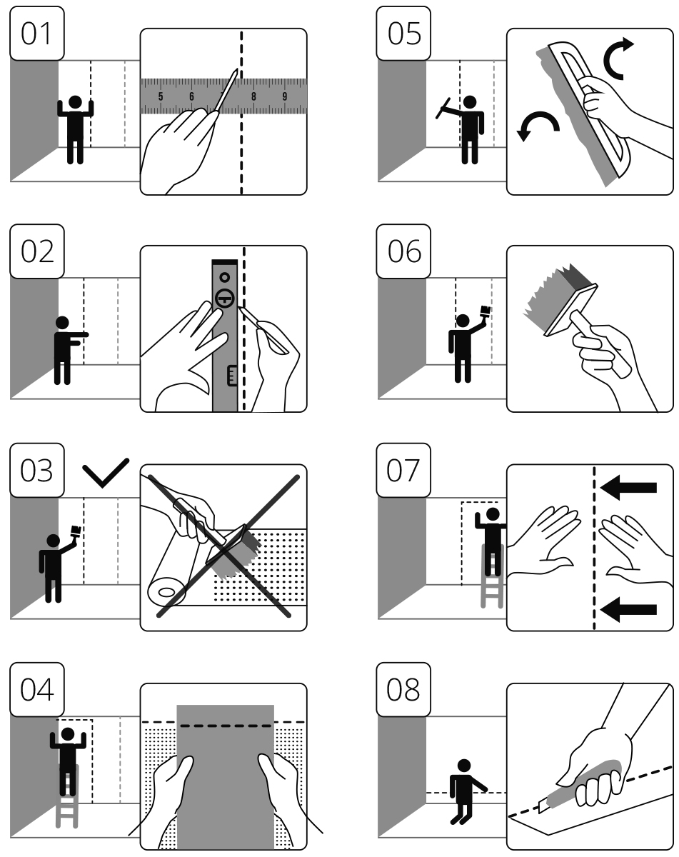 *由於膠的乾燥過程中,不建議在配有低濕度和具有低於10℃的溫度下施加的壁紙。在施加和乾燥過程中的最佳室溫18-21ºC之間