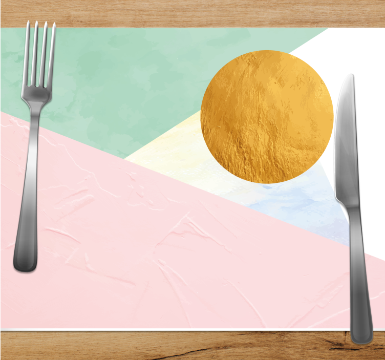 一个迷人的纹理几何形状的排列,突出的金色圆圈映衬在柔和的背景下。这个设计通过动态的色彩和形状组合散发出现代优雅,创造出一种复杂的视觉吸引力。