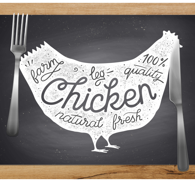 得到这个带有文字和公鸡图案的黑板餐垫。
