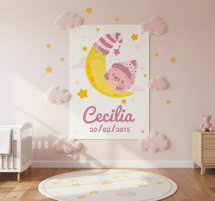 儿童房的海报:带名字和生日的宝宝