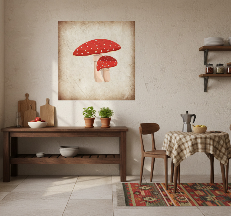 厨房宣传画:毒蝇伞蘑菇插图是厨房装饰的理想选择。它不仅为您的空间增添了艺术感,更能激发烹饪的灵感。无论是家庭聚会还是日常使用,这幅作品都能让您的厨房充满生机与创意。让食物与艺术相结合,让您的厨房成为一个充满魅力的地方!