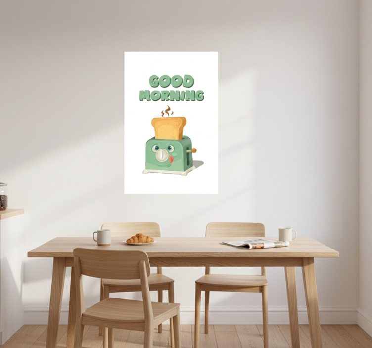 在清晨的阳光下,厨房宣传画 早晨与烤面包机相伴展现出一种温馨而舒适的家居氛围。设计灵感来源于温暖的早晨时光,伴随着烤面包机的香气,让人倍感惬意。这款海报采用克重为180克/平方米的高品质纸张,确保其在墙面上的持久性和视觉冲击力。半哑光的表面设计,使得光线反射最小化,完美展现出丰富的色彩强度,宛如真实的生活场景。
