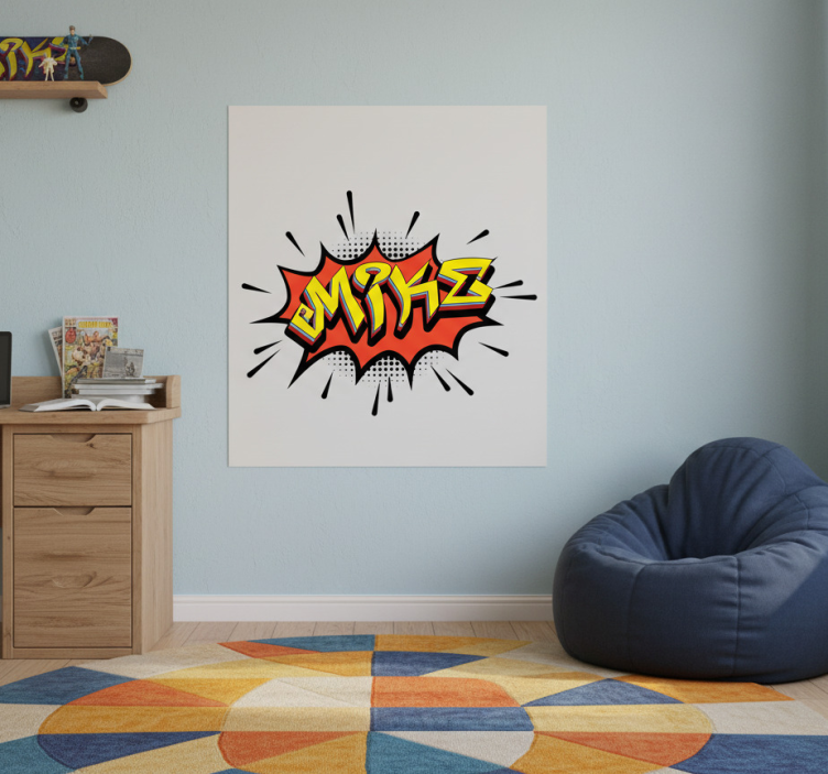 一幅生动的插图展现了一个充满活力的涂鸦风格设计,展示了名称'Mike'。这件艺术作品充满了明亮的色彩,包括黄色和红色,背景则是中性色调。这件充满活力的作品以其漫画风格吸引了注意,完美地为任何空间增添了一丝俏皮的气息。