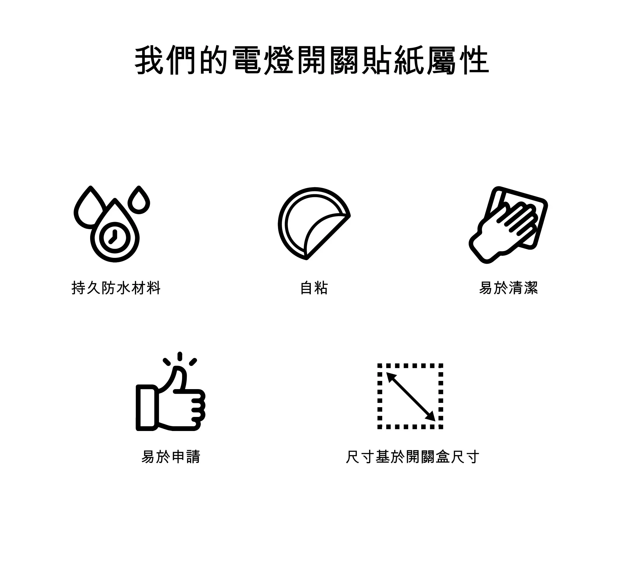 运用你的想象力来装饰一个非美学元素,如灯光开关。所示的措施指的是方框本身。如果您的交换机具有不同的大小比例,请通过 info.asia@tenstickers.com 与我们联系。