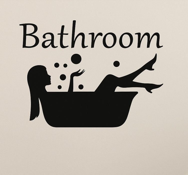 一幅奇幻的设计,描绘了一个人放松地泡在浴缸里,周围环绕着泡泡。附带的文字标识了这个空间,增强了浴室的宁静氛围。这个画面体现了自我关怀和放松的本质,提醒人们洗澡可以是一个宁静的时刻。