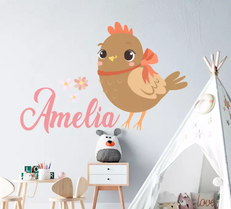 一只可爱的鸟儿,系着蝴蝶结,周围环绕着小花。这款俏皮的设计非常适合个性化儿童空间,为任何环境增添一丝温暖和快乐。这个角色唤起了生机和纯真的感觉。