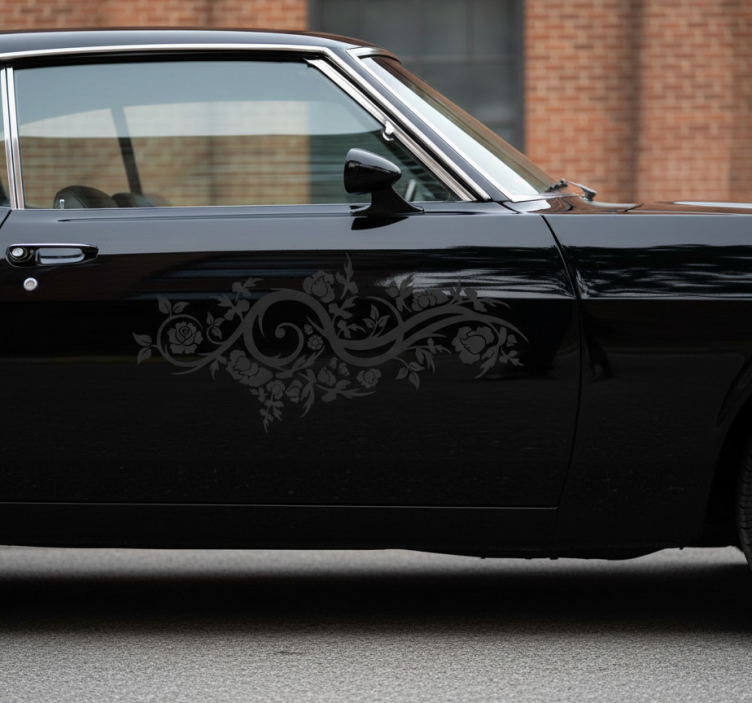 优雅的花卉图案交织在一起,形成一种带有精致和魅力的设计。复杂的线条和玫瑰传达出一种优雅感,提升了装饰表面的整体美感。这种艺术风格可以使任何车辆脱颖而出,反映出个性和风格。