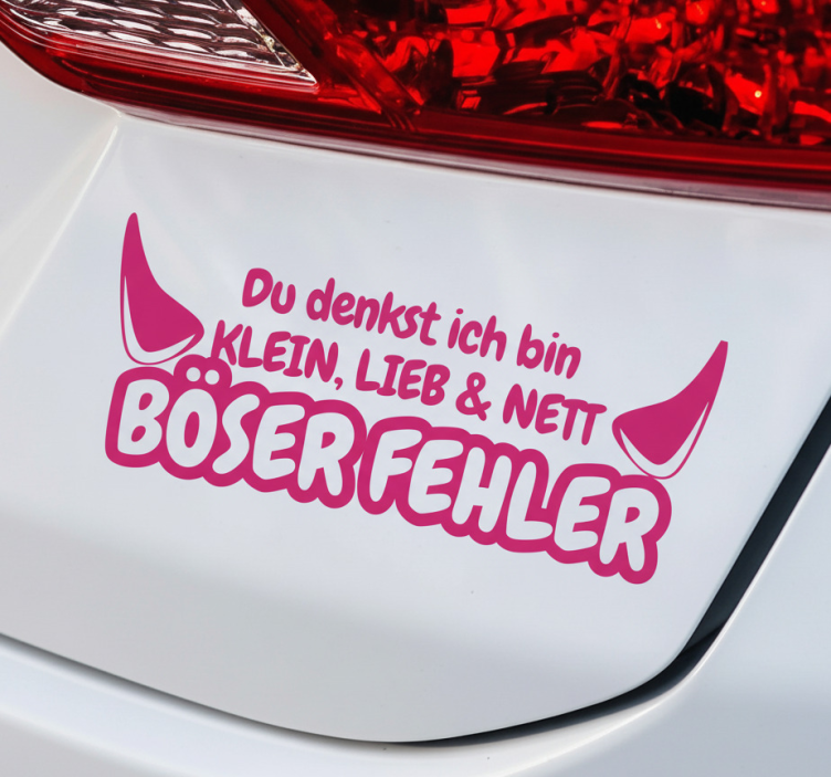 參考:: A53262欢迎您查看我们的汽车贴纸坏错误粉色魔鬼!这款独特的汽车贴纸设计灵感来源于现代艺术,融合了鲜艳的粉色和生动的魔鬼形象,绝对能够为您的爱车增添个性魅力。它的缎面表面处理确保了在任何光线下都不会产生反射,同时展现出色彩的强度,让您在驾驶时也能自信满满。