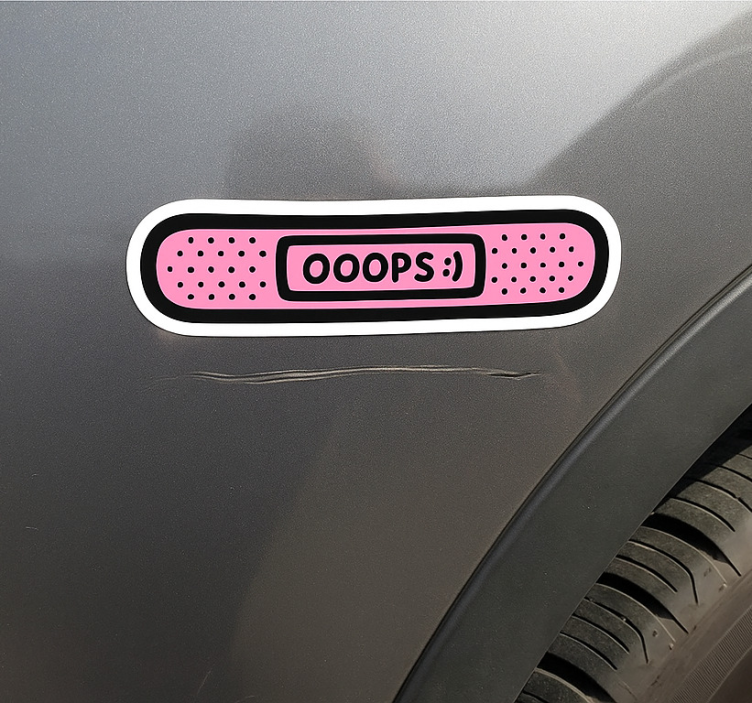 一个俏皮的设计,像绷带一样,突显了词语 'OOOPS :)'。这个设计为任何表面增添了幽默感,非常适合那些欣赏轻松愉快装饰的人。这个句子轻松地承认了小失误,将潜在的瑕疵转变为一个有趣的声明。