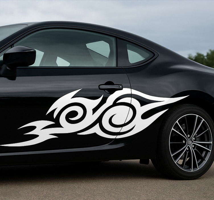 优雅流畅的曲线创造出一种艺术部落设计,增强了车辆的运动外观。大胆的图案增添了动态感,暗示着速度和活力。定制化使个性化成为可能,使其独一无二。该设计体现了自由和个性,传达了一种冒险和表达的感觉。