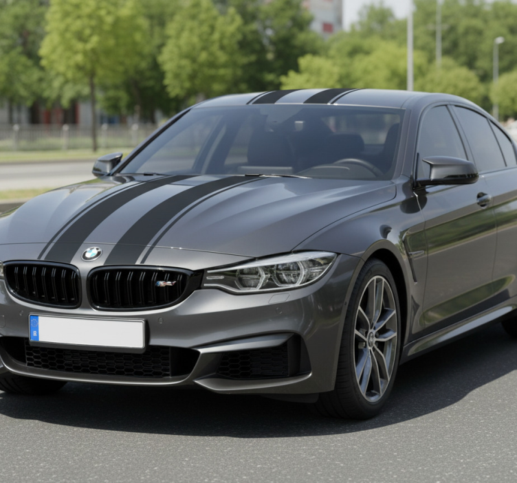 一辆流线型的汽车,配有引人注目的赛车条纹,增强了其运动美学。大胆的设计强调了速度和性能。汽车的攻击性姿态,加上流畅的轮廓,展现出一种力量和灵活感,使其成为重视风格和功能的爱好者的完美选择。