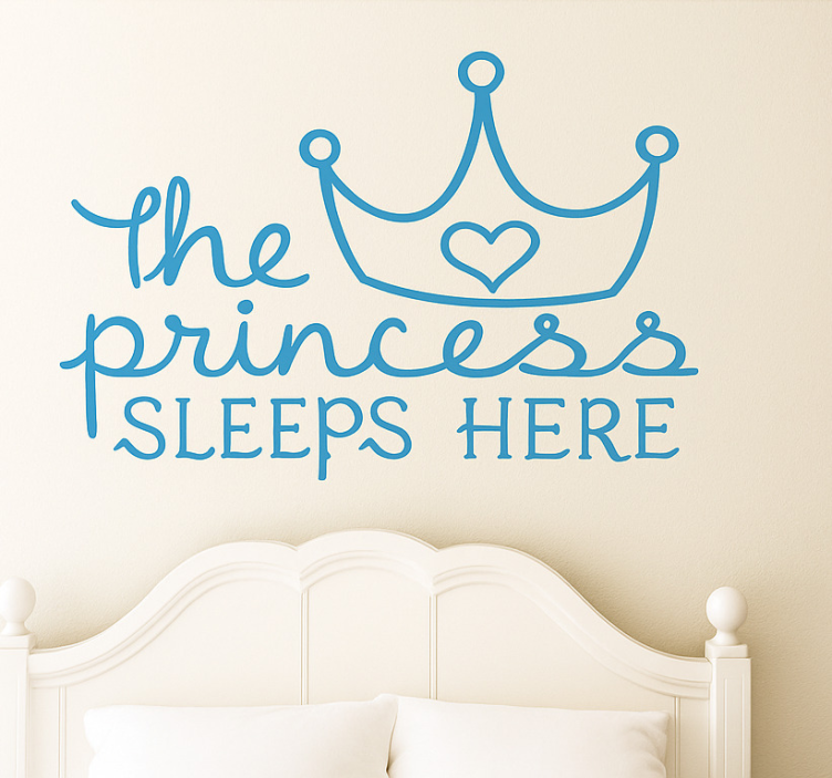 墙上装饰着一个奇幻的皇冠设计,配上短语'the princess sleeps here',为孩子的空间创造了一个迷人的焦点。这个俏皮的信息强调了想象力和王室的感觉,将卧室变成一个童话般的庇护所。