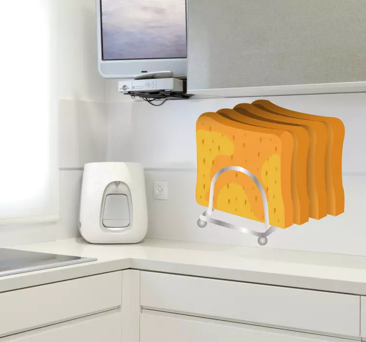 一个充满活力和趣味的烤面包架展示,多个面包片整齐地排列在一起。金属支架增添了一丝优雅,同时强调了实用性。完美适用于厨房环境,这一设计将实用性与趣味美学和谐融合,提升任何用餐体验。