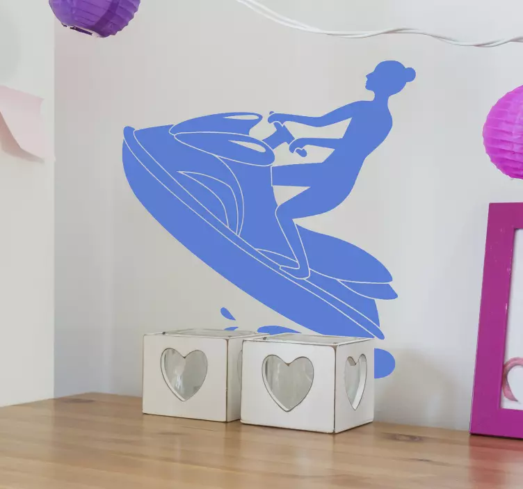參考:: A50236体验极限运动的刺激,这幅动态表现描绘了一位女性骑着 jet ski。设计捕捉了冒险与兴奋的本质,非常适合热爱水上活动的人。理想选择,为任何空间增添一抹活力。