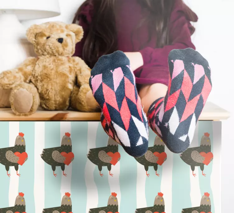 欢迎来到我们迷人的动物贴画世界!这款动物贴画迷人的鸡图案呈现出可爱的公鸡与心形条纹图案,色彩丰富多彩,仿佛将农场的欢乐氛围引入您的家居空间。无论是用于家具装饰还是墙面点缀,这些生动的鸡图案都能为您的生活增添一抹亮色,让每一个角落都散发着温暖与活力。