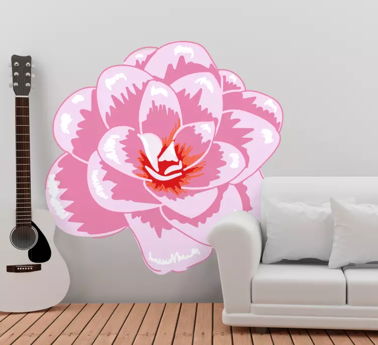 这个花卉描绘展示了一朵大型的粉色花朵,花瓣复杂且中心鲜艳。这个设计强调了花朵的美丽和自然优雅,非常适合为任何空间增添一丝清新感。