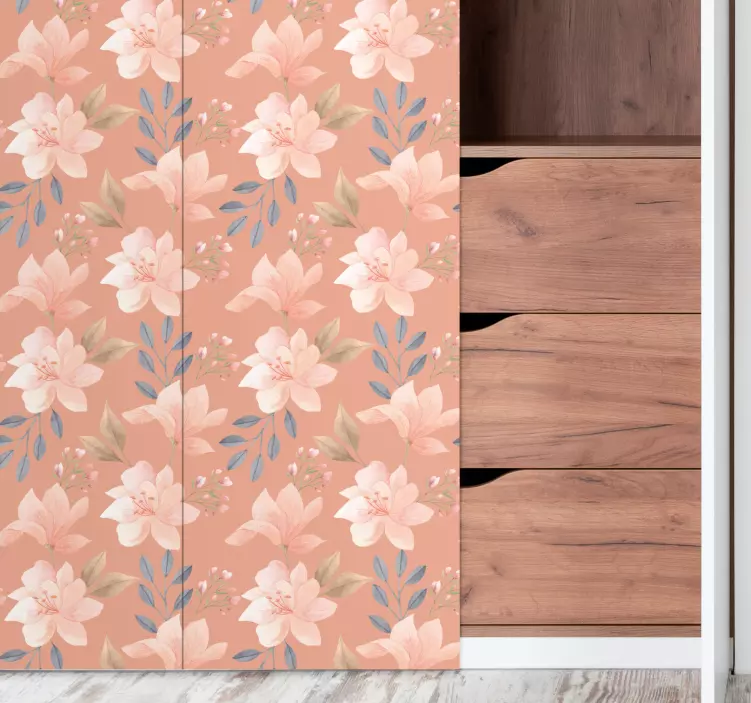 该设计展现了迷人的盛开花朵和细腻叶子的图案,色调柔和。这个构图为任何空间带来了清新而优雅的气息,非常适合营造宁静的氛围并提升美感。