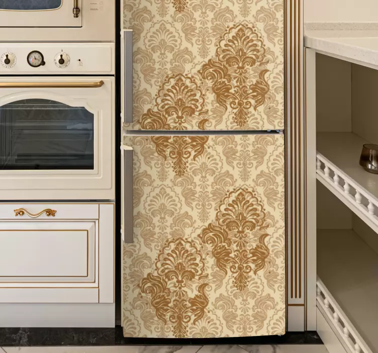 參考:: A49573一个迷人的复古图案,展现了复杂的花卉设计,采用温暖的色调。这个设计完美地提升了厨房电器的美感,将优雅与经典风格相结合,将普通表面转变为时尚的装饰元素。