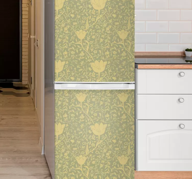 欢迎来到我们的花卉图案设计贴纸世界!这款独特的冰箱贴纸融合了金色与绿色的花卉图案,散发着优雅的氛围。每一处设计都体现了自然的美丽,仿佛将花香带入了您的厨房。无论是黄色的花朵还是恬静的绿色叶片,都能为您的空间增添生机与活力,让每一次打开冰箱都充满惊喜!