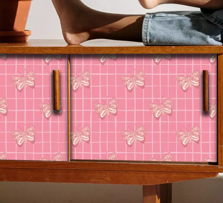 这款粉色蝴蝶图案的冰箱贴纸,展现出一种优雅与俏皮的结合。设计灵感源自自然界中美丽的蝴蝶,细致的网格和方格图案为您的家具增添了一抹生动的色彩。装饰性的设计使其成为任何空间的完美选择,尤其是在厨房或餐厅,能够瞬间提升整体氛围。