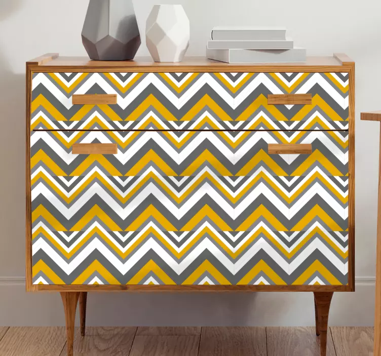 这款家具贴纸斜纹叠加设计以其独特的几何图案吸引了众多目光。其曲折的三角形设计巧妙地融合了北欧风格,展现出现代家具的典雅与时尚。色调上的黄色与灰色相互交织,带来了一种令人愉悦的视觉体验,仿佛在诉说着家居生活的美好。
