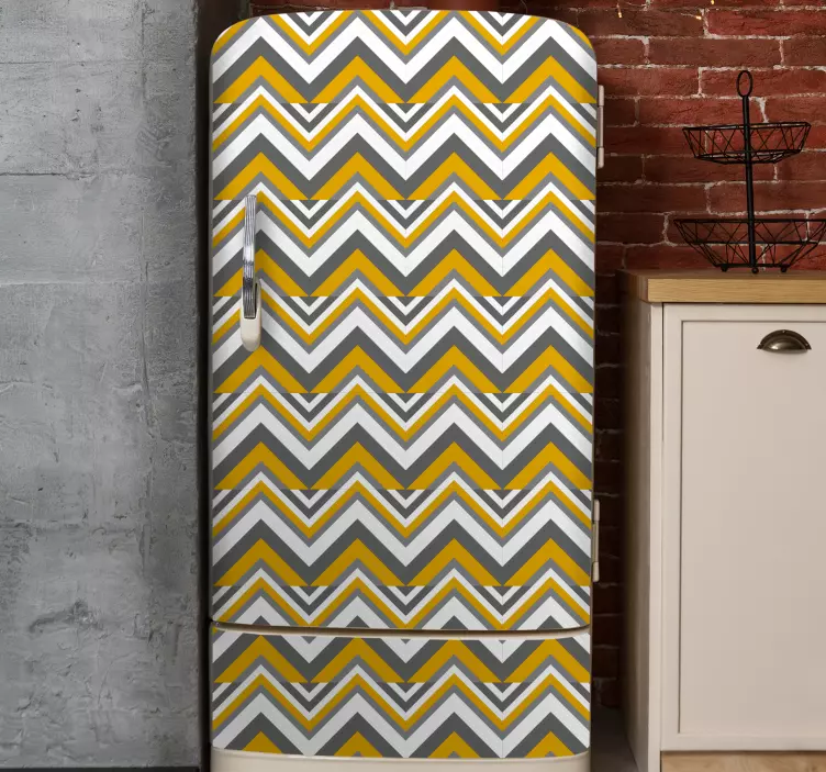 我们的家具贴纸斜纹风格覆盖贴以其独特的设计吸引眼球,展现了北欧风格的魅力。其曲折的三角形图案,在冰箱表面上勾勒出现代的艺术感,明亮的黄色与优雅的灰色相互交织,赋予您的家居空间一种新鲜而时尚的气息。