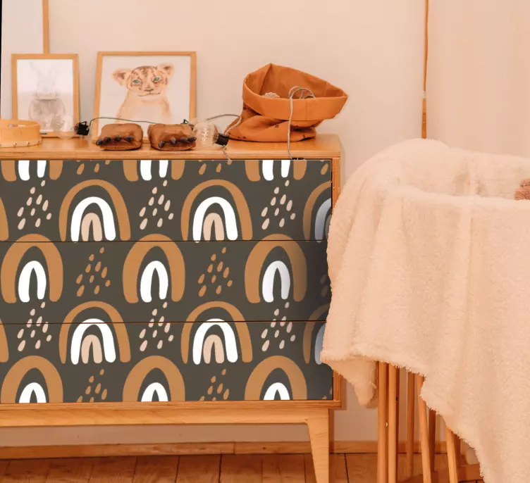 这款家具贴纸彩色拱形图案以其独特的设计为您的空间带来了生机与活力。灵感来源于自然界的彩虹与雨滴,几何的图案设计让人感受到现代与俏皮的气息。丰富多彩的色彩搭配,赋予了家具贴纸一种有质感的视觉效果,让每一处细节都散发着无限魅力。无论是客厅、卧室还是儿童房,这款家具贴纸都能轻松融入,提升整体装饰效果!